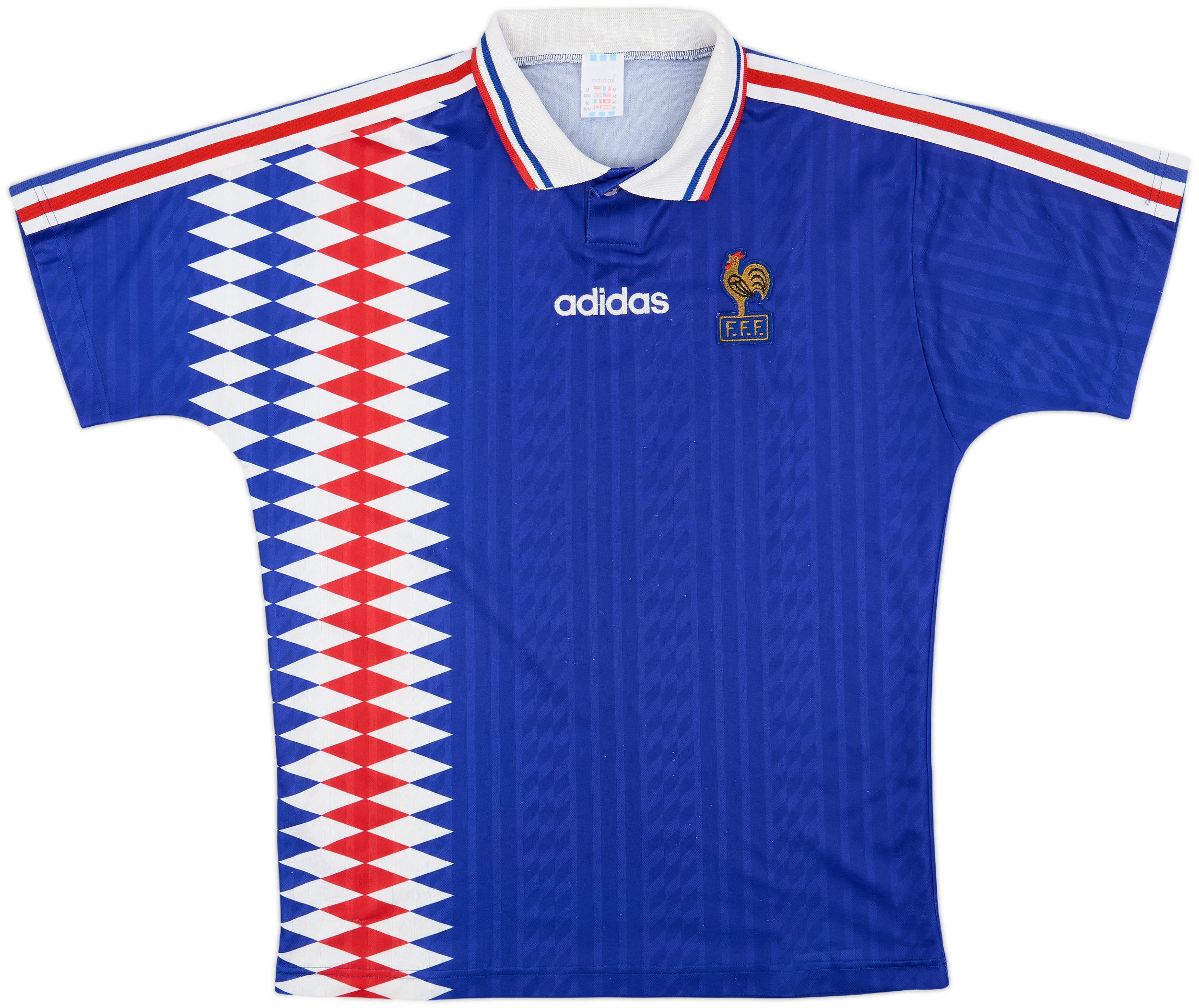 France’s adidas home shirt for the 1994–96 period was worn during their unbeaten qualifying run for Euro 96, where they secured second place in their group. The team conceded only two goals throughout the campaign, with Romania and Poland being the only sides to score against them.