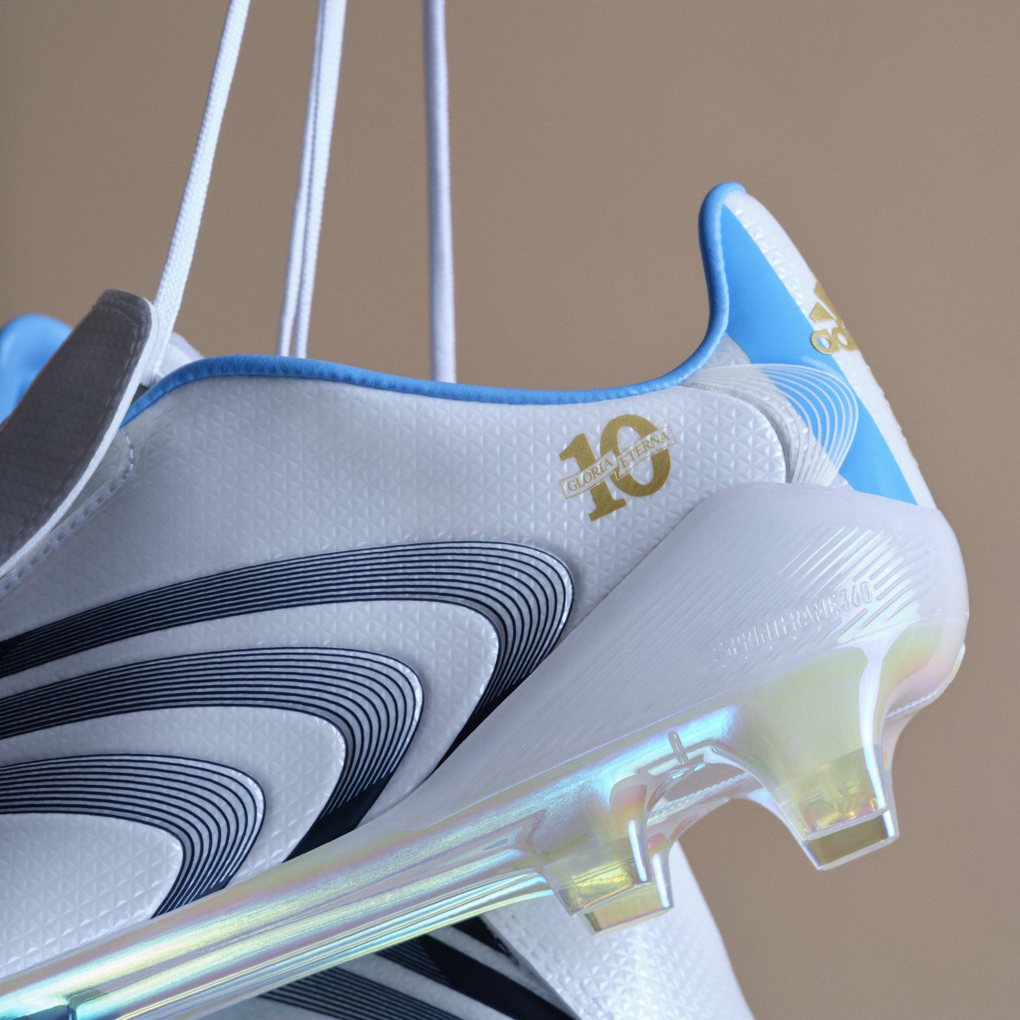 Underfoot, the Sprintframe 360 outsole is shaped to support acceleration and stability through an anatomically structured plate. The stud configuration blends bladed and semi conical elements, designed to assist traction during explosive take offs, quick turns and straight line speed on firm natural grass surfaces. Lightweight coring within the outsole helps maintain responsiveness without unnecessary bulk.