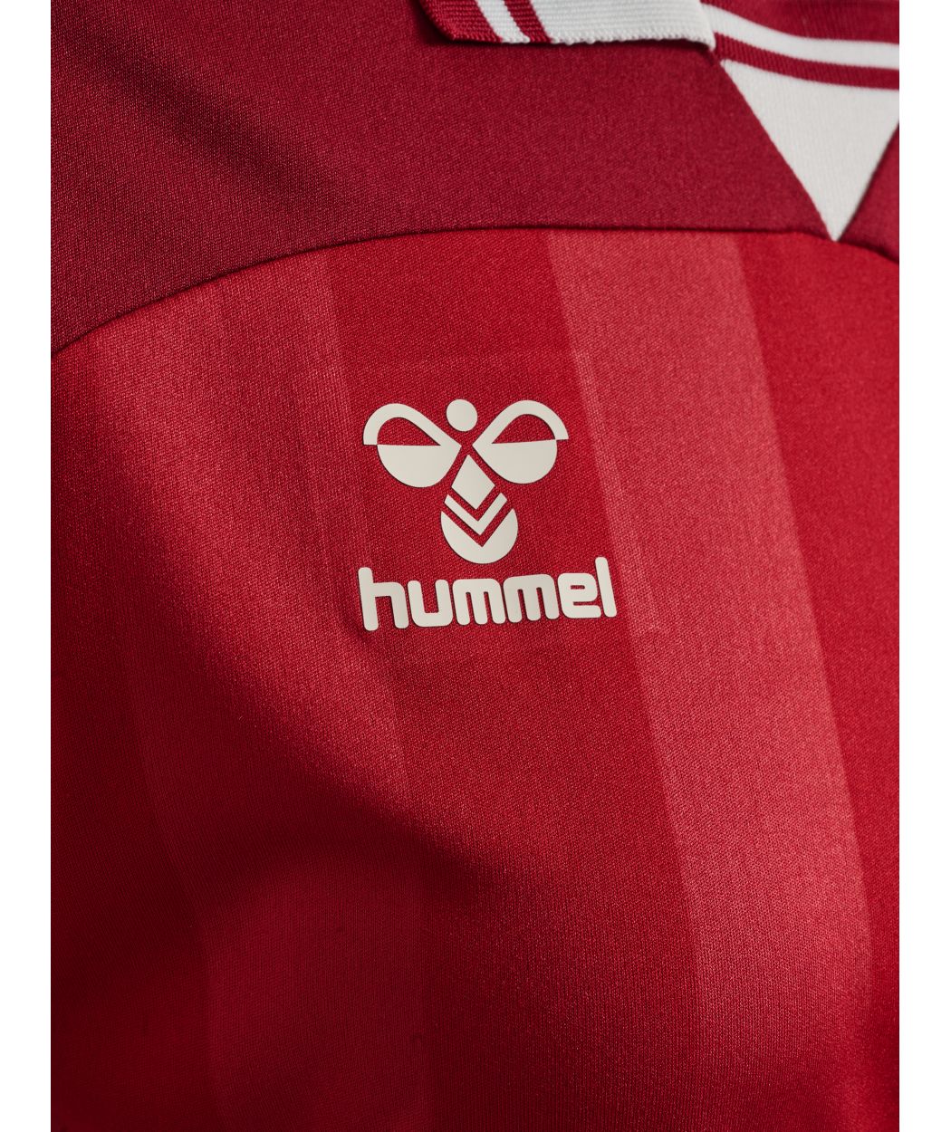 The front displays the DBU crest and Hummel logo in white, along with Hummel’s “Authentic Apparel” tag and “BeeCool” branding near the hem to highlight moisture-wicking performance features. The kit will be completed with matching red shorts and socks.