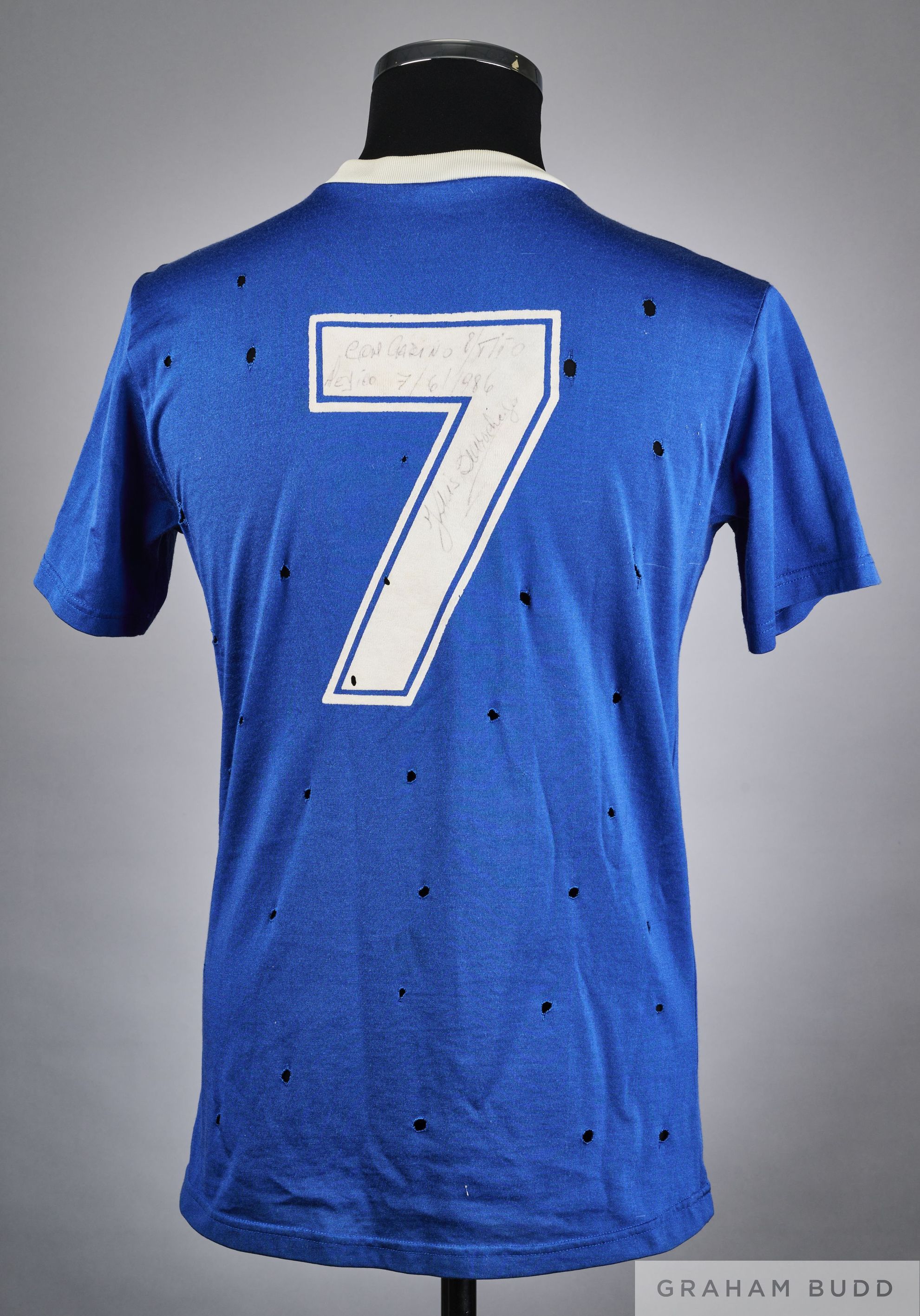 The other sweat-retaining shirts were disposed of but this one, which was gifted to Argentine kit man Tito, has stood the test of the last four decades and recently sold for £7,000 at auction.