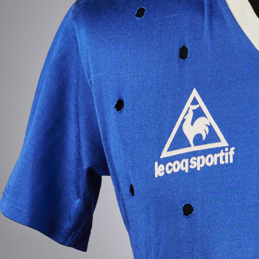 As part of the process of replacing the style of Le Coq Sportif Away shirt worn in the Mexico ’86 second round victory against Uruguay, coach Carlos Bilardo took scissors to the 7-numbered example belonging to Jorge Burruchaga - who would go on to score the winning goal in the final - to demonstrate an Aertex-style effect.
