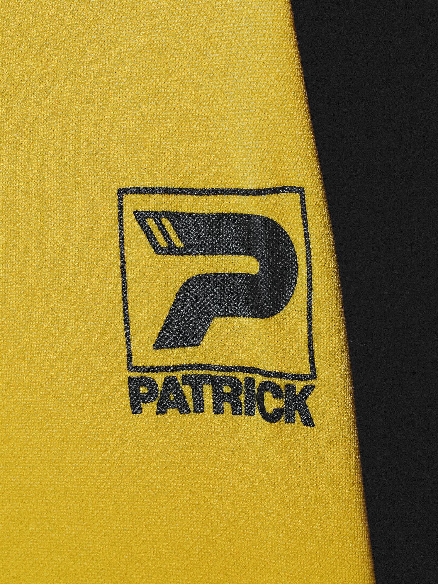 A V-shaped neckline is detailed with black, red and white trim, complemented by matching sleeve cuffs. The Patrick logo is present on the sleeve, while the inner neck label carries the original red Patrick branding.